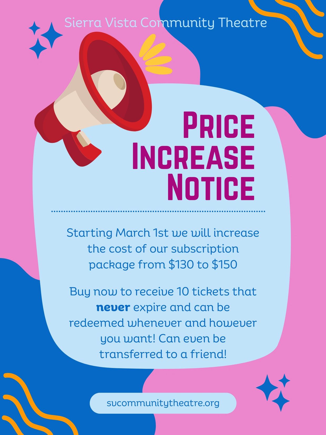 Your contribution to the arts in Sierra Vista enables us to improve the theatre and keep the lights on as we continue to bring you the very finest in live theatre!